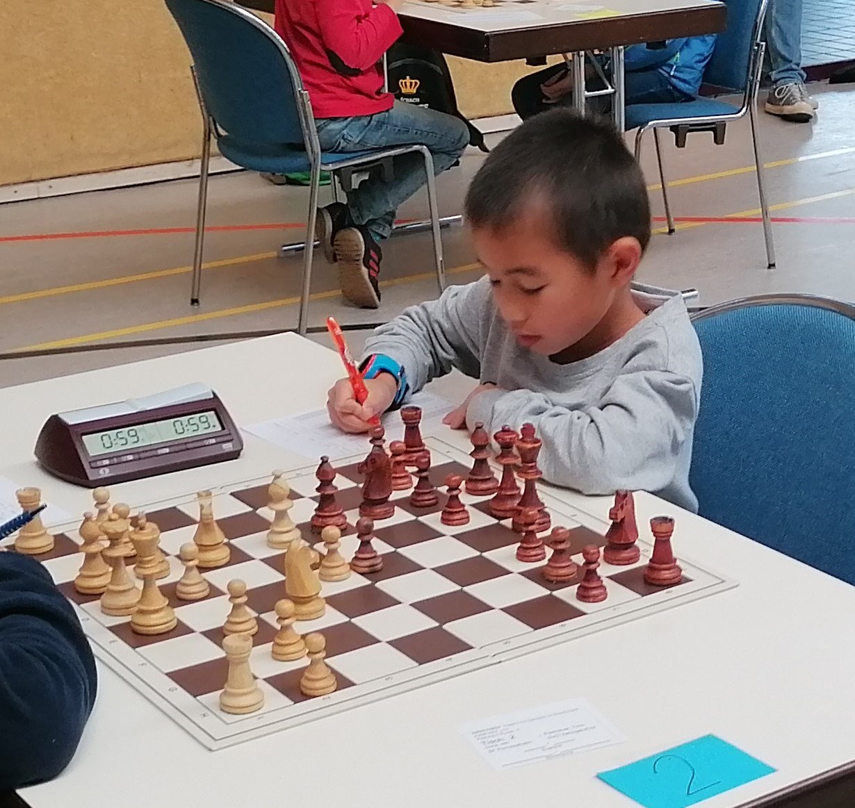 Alessandro erreichte ohne DWZ in einem Starterfeld mit fast ausschließlich DWZ-Spielern den 19. Platz. Es waren auch sehr starke Spiele dabei, bei denen er zum Teil mit Damenvorteil führte, jedoch im Endspiel seine Partien unglücklich verloren hatte. Er lies sich aber nicht entmutigen und war immer gut gelaunt und hat wertvolle Turnierpraxis gewonnen. Mit seiner Haltung war er auch ein Vorbild für die jüngeren Lea und Felix, die bei Niederlagen schon mal gegen Tränen ankämpfen mussten.